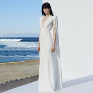 Off White Cape Effect Silk Gauze Peplum Maxi Dress Sale Up To 70 Off The Outnet Chloe The Outnet