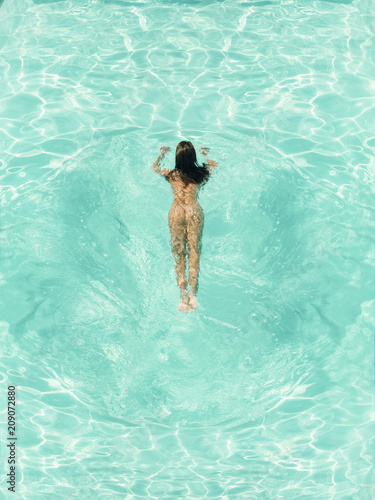 Aerial Top View Of Naked Woman In Swimming Pool With Blue Water In Motion Buy This Stock Photo And Explore Similar Images At Adobe Stock Adobe Stock